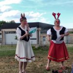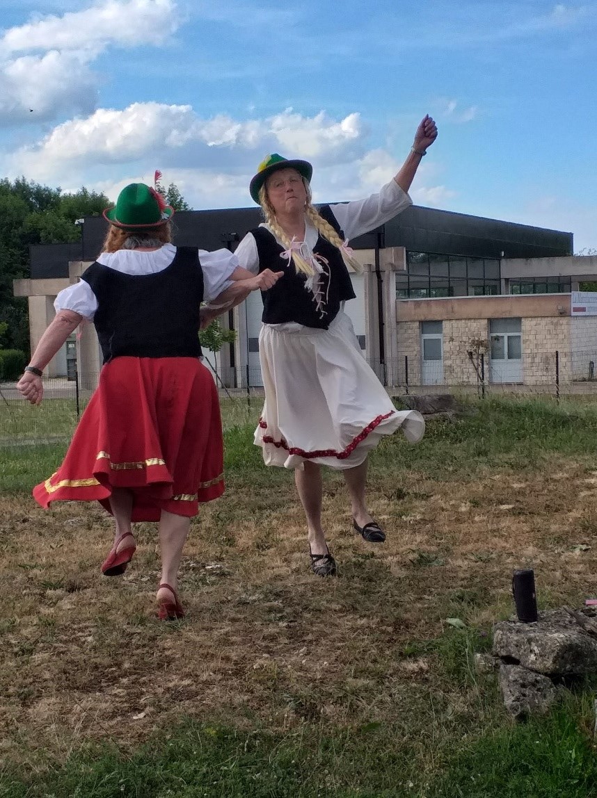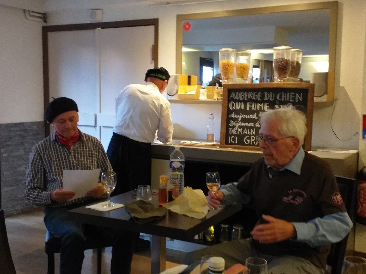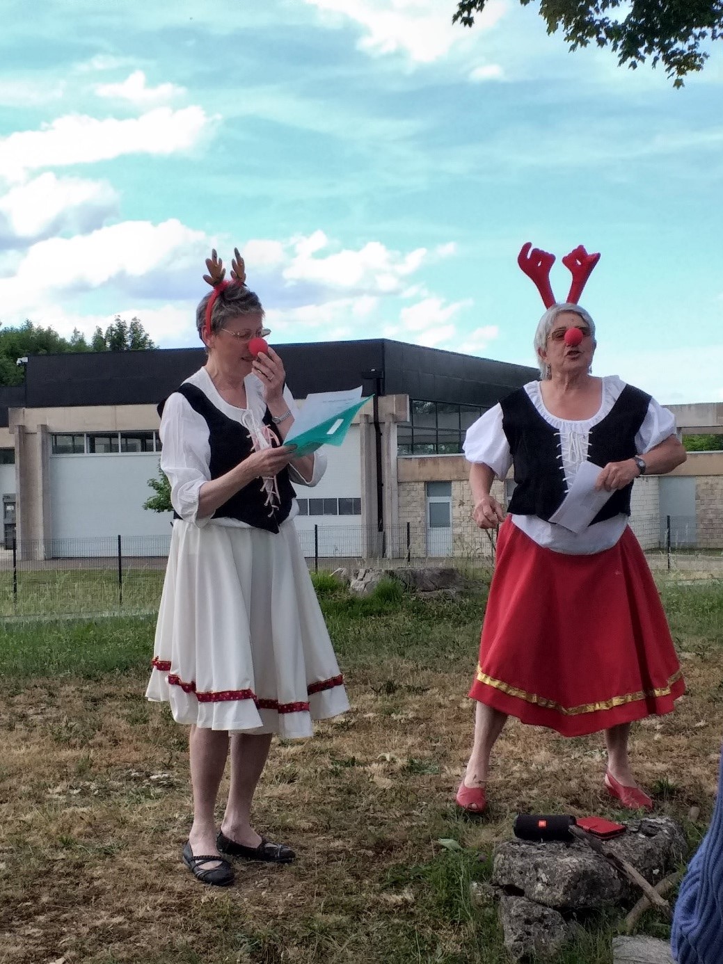 Alle Teilnehmer freuten sich schon sehr auf die obligatorische Soiree, den Bunten Abend, der mit einem Glas Champagner im Hotel begonnen wurde. Bereits beim Aperitif erfreuten die Franzosen die Gruppe mit einem Stück aus dem „Kleinen Prinzen“ und zwei Französinnen verwandelten sich in singende und tanzende bayrische Madeln in stilechten Dirndln. Es folgte ein Ratespiel mit französischen Wörtern, die im Deutschen Verwendung finden, und dann trugen auch die Bietigheimer mit einem französischen Sketch „Ici on mange demain gratis“ zur guten Unterhaltung bei. Für viel Stimmung sorgten vier deutsche Matrosinnen, die einen Matrosentanz aufführten. Am Schluss folgte noch ein Ausschnitt aus „Cyrano de Bergerac“, bevor der Abend mit dem Austausch der Gastgeschenke endete.