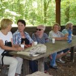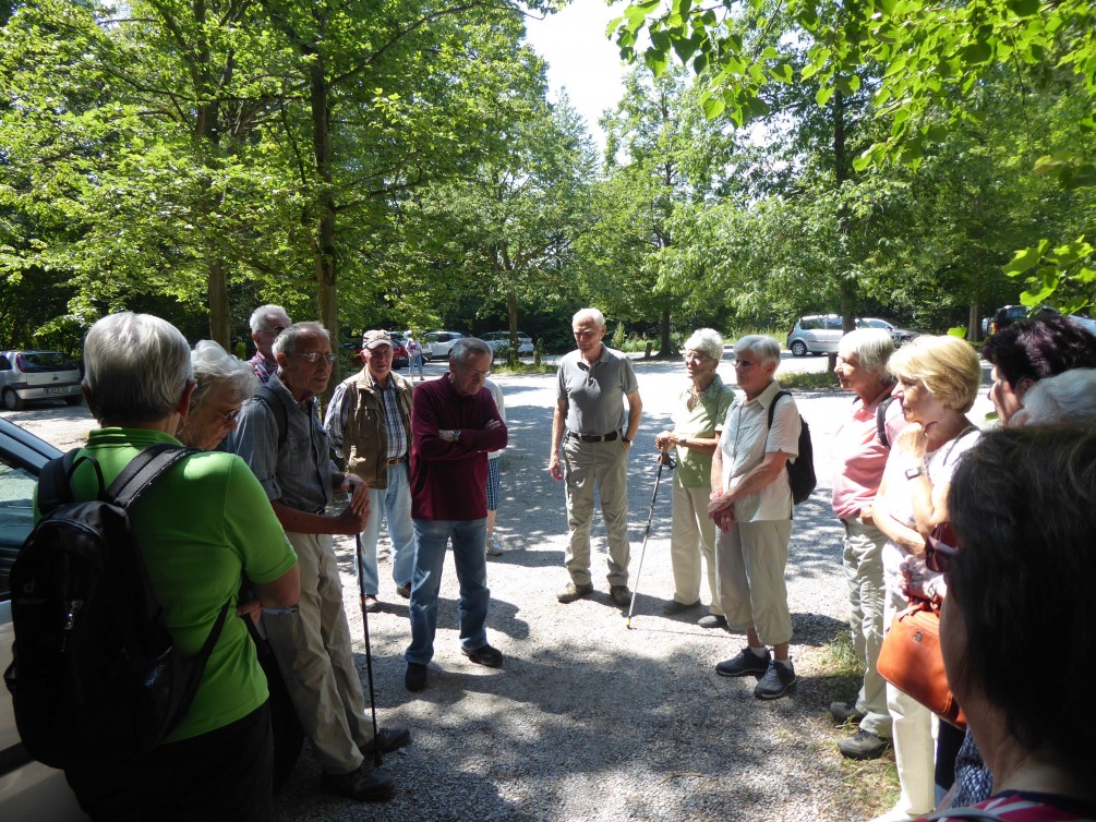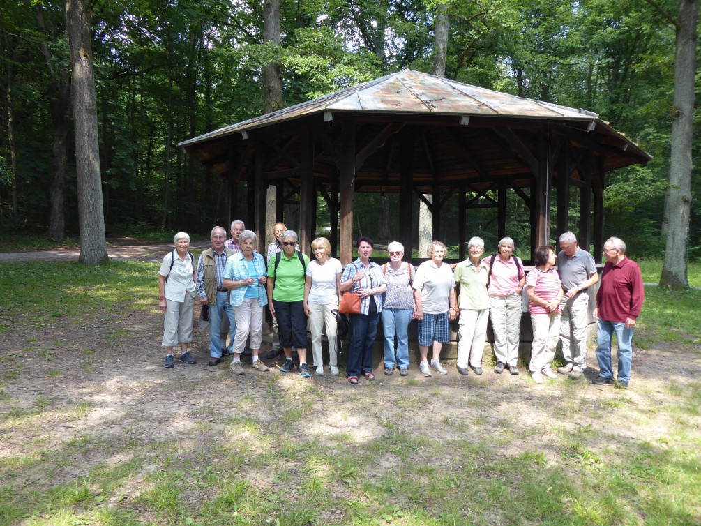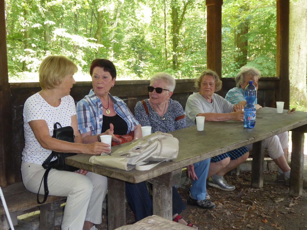Am Lusthaus wartete eine kleine Erfrischung auf die Teilnehmer, die an dem heißen Sommertag gerne angenommen wurde. Hier, in schattiger Umgebung, erläuterte der Wanderführer die große Bedeutung der Wälder.
