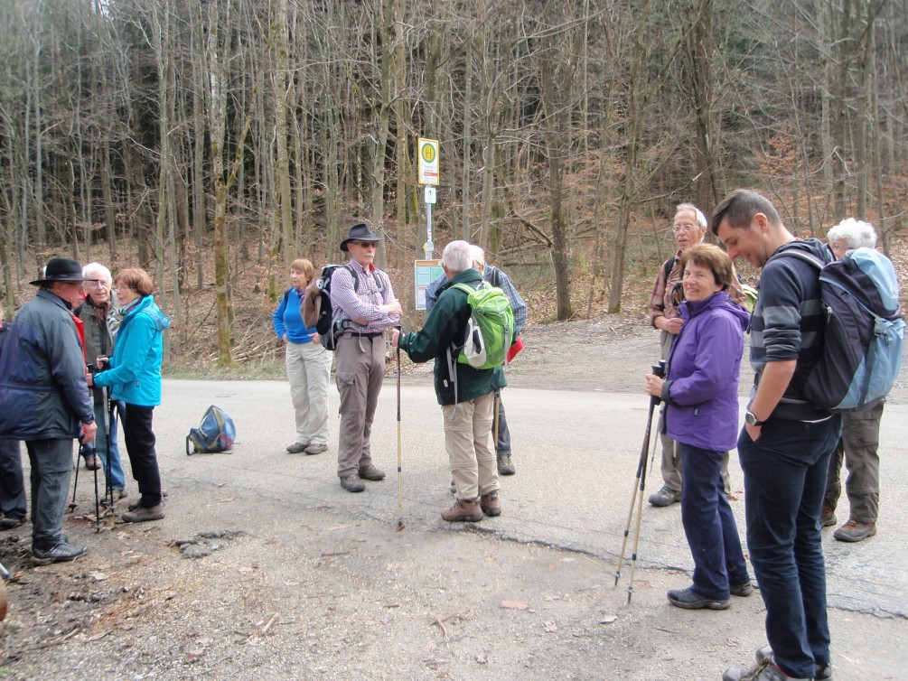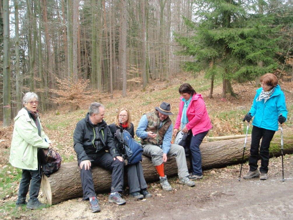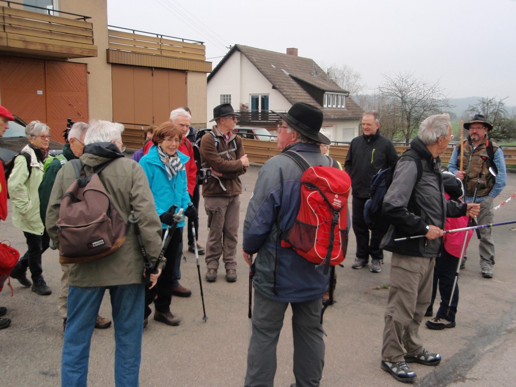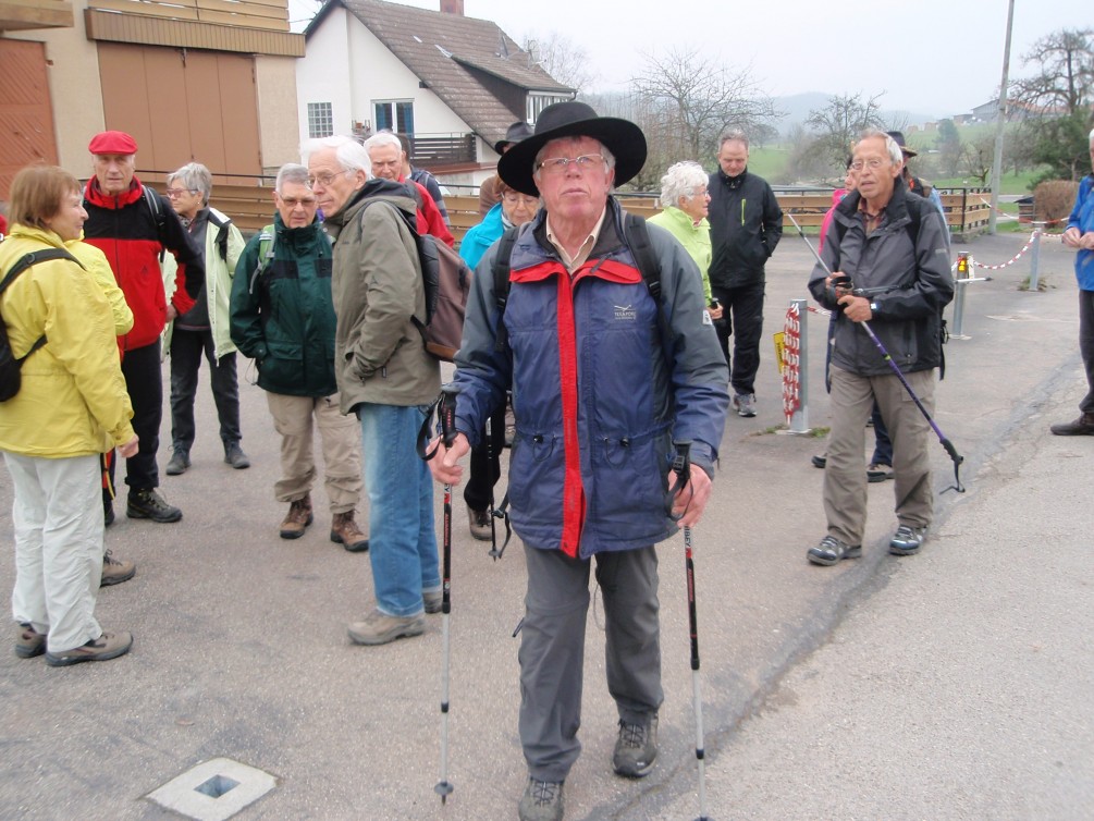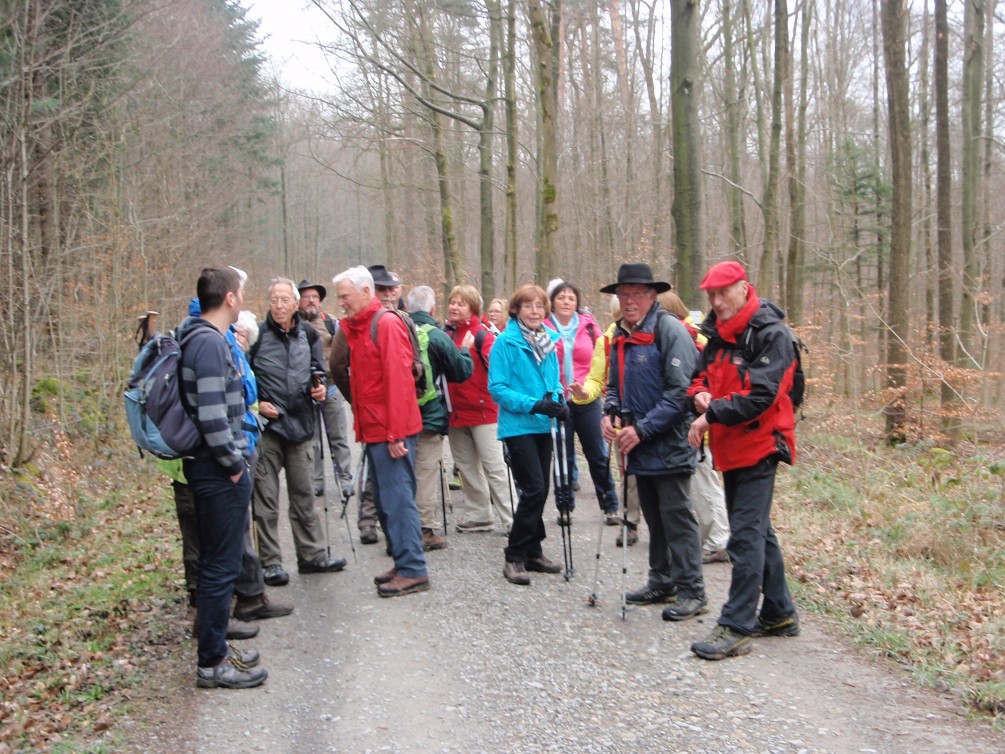 Mit dem Bus erreichte die Wandergruppe rasch Prevorst. Von dort aus führte der Weg zuerst über Wiesen und Waldwege in Richtung Stocksberg. Das Wetter war noch etwas trübe und die Wiesen und Waldwege feucht.