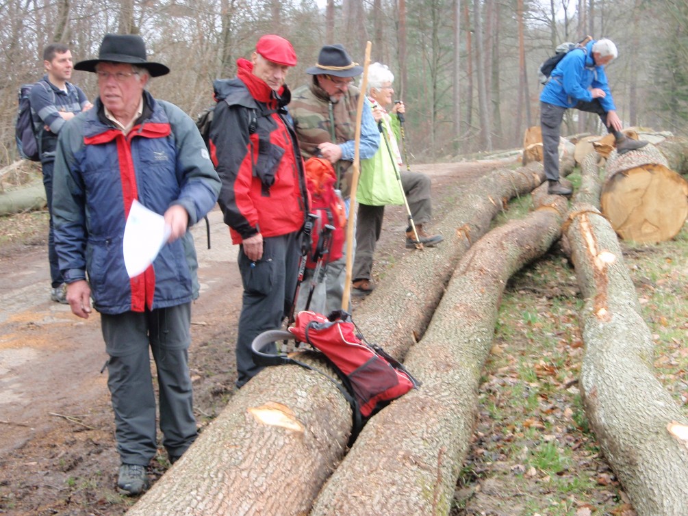 Die Wandergruppe wanderte weiter über von Holzabfuhr stark in Mitleidenschaft gezogene Wege zum Steinsberg. Hier gab es einen Halt an der Kreuzbuche. Der Wanderführer informierte über den nahe gelegenen Silberstollen. Der Stollen ist ein Relikt aus der Zeit, als man rund um Spiegelberg sein Glück im Bergbau versuchte, jedoch kein Silbervorkommen entdeckte. Auch der Vater von Friedrich Schiller investierte in das Unternehmen und gehörte dadurch auch zu den Geschädigten. Zum „Dank“ dafür nannte der Sohn Friedrich den „bösen Wicht“ in den „Räubern“ „Spiegelberger“. Der 22 m lange Stollen des Silberbergwerks ist verschlossen, zum Schutz der dort wohnenden Fledermäuse.