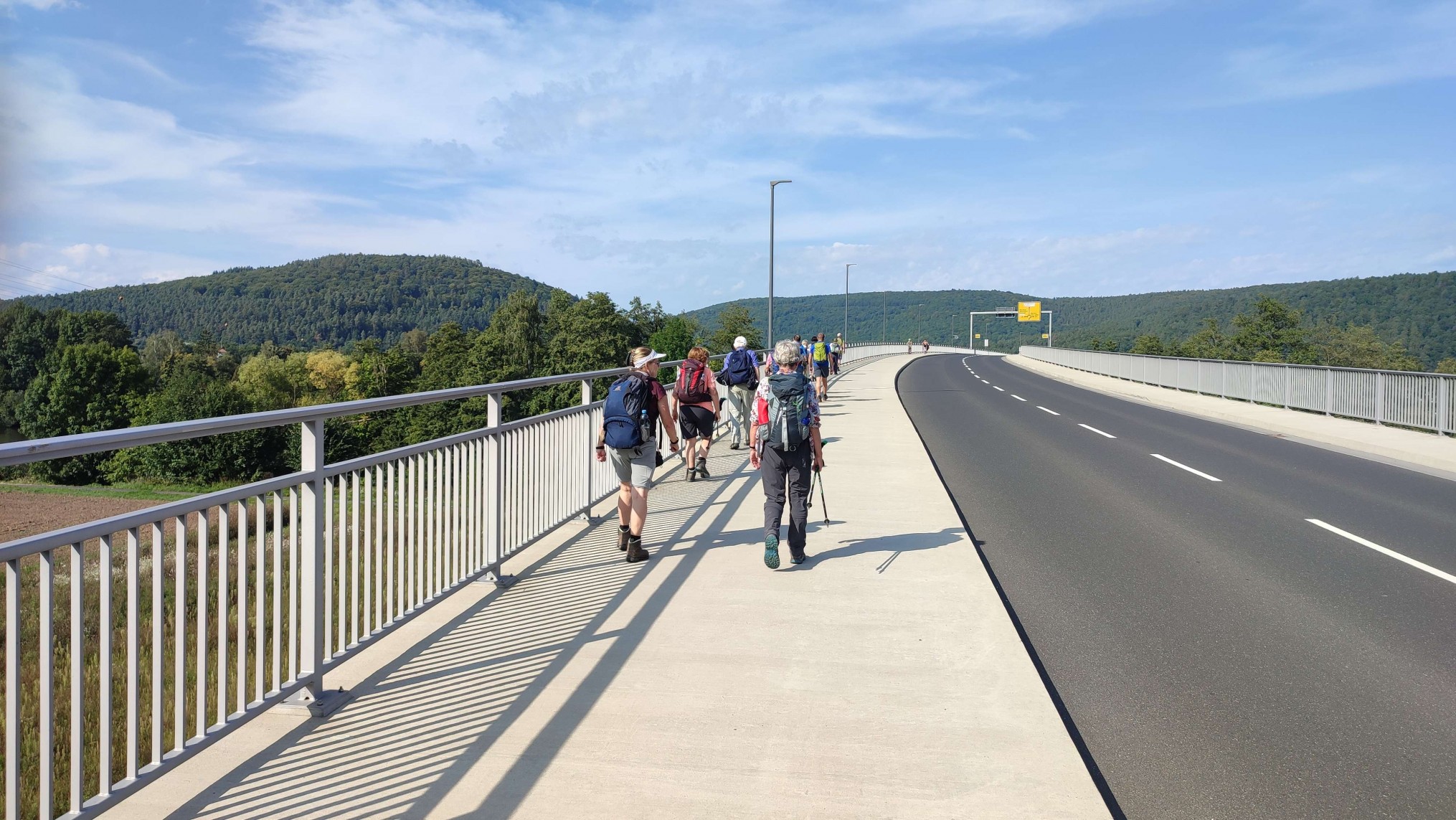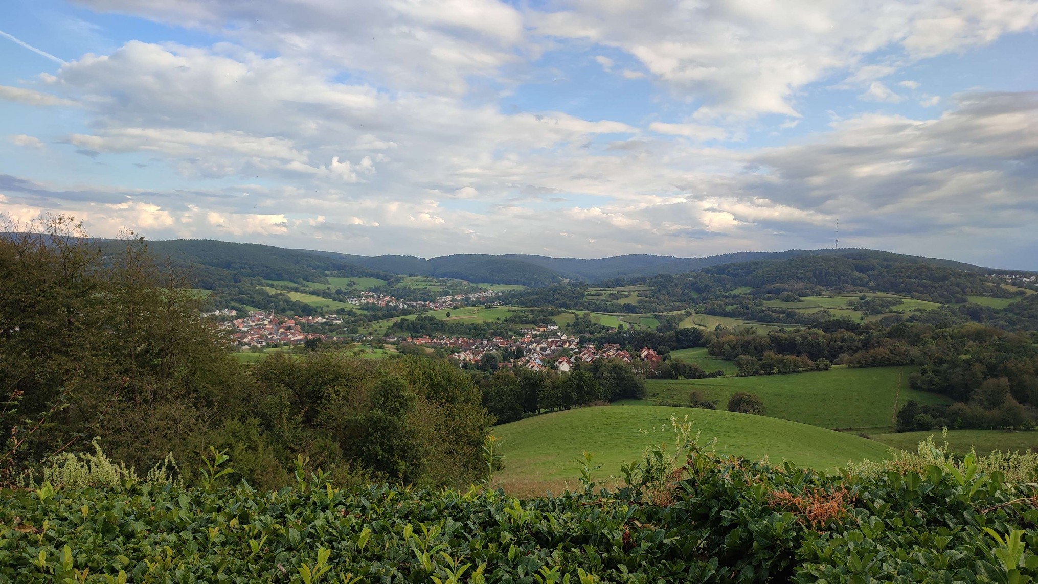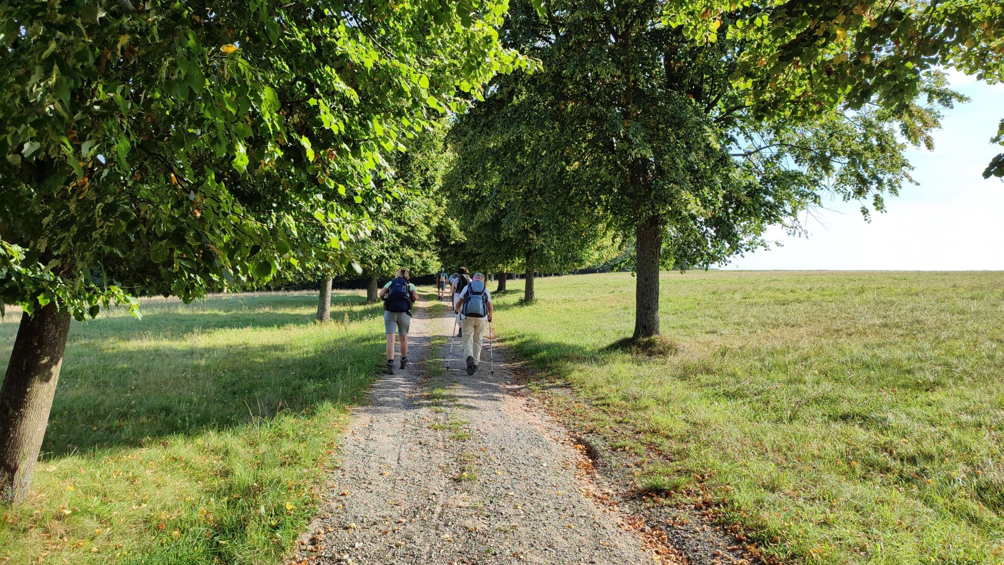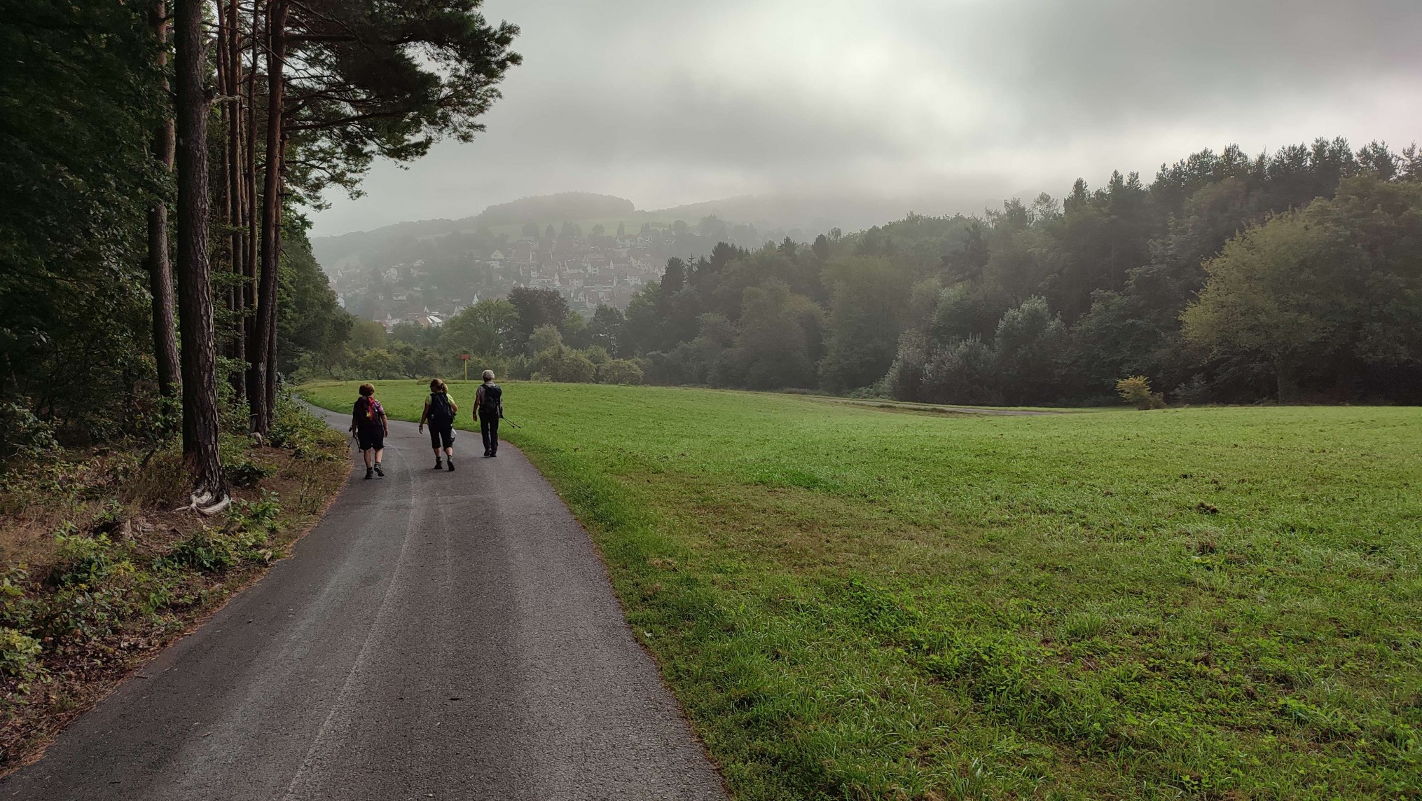 Am nächsten Morgen wanderte die Gruppe zunächst über Felder nach Unterbessenbach. Nach einem Abschnitt durch einen wunderschönen Buchenwald ging es über Wiesen hinab ins Spessartörtchen Rothenbuch, mit seinem markanten Wasserschloss, das der Mainzer Kurfürst direkt neben der Hafenlohrquelle 1567 errichten ließ.