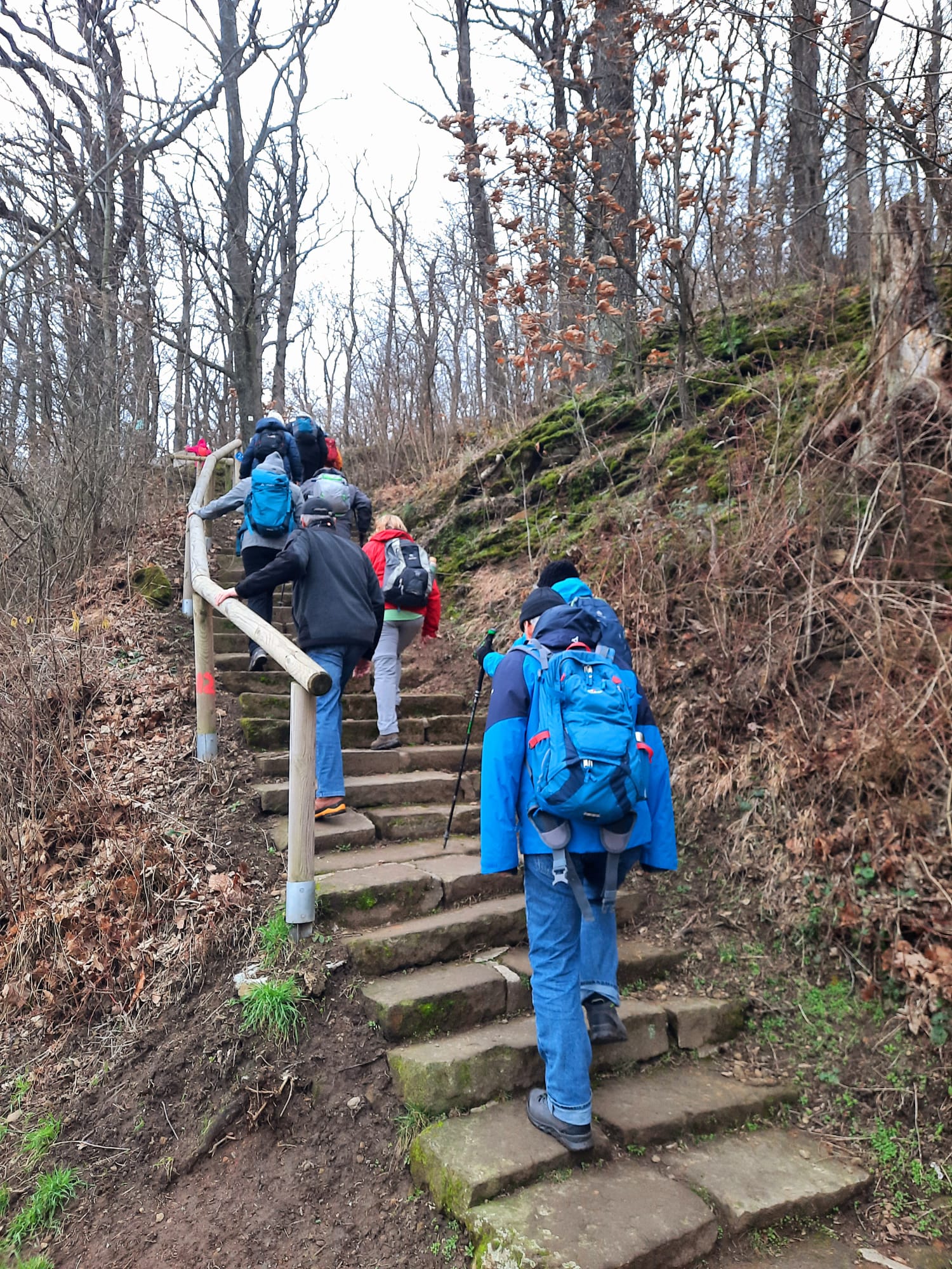 Die Wanderung der Ortsgruppe Bietigheim-Bissingen ins Heilbronner Land hatte einen ganz besonders guten Start: Eine tolle Wandergruppe, trockenes Wetter und der Zug vom Bahnhof Bietigheim traf pünktlich ein! Vom Bahnhof Heilbronn brachte uns der Stadtbus zum Trappensee, wo unmittelbar der Weg durch das romantische Naturschutzgebiet Köpfertal startete. Stets vom Köpferbach begleitet ging es bis zum Stausee, welcher idyllisch in die Landschaft eingebettet ist. Bald war das Jägerhaus erreicht, wo uns ein weiterer besonders schöner Abschnitt unserer Wanderung erwartete, der ehemalige Schilfsandsteinbruch. Der Weg durch den Steinbruch hat eine ganz besondere Atmosphäre und schlängelt sich verwunschen durch die steilen Felsen. Am Ende des dieses Wegestücks ging es etliche steile Stufen hinauf und von heftigen Windböen begleitet geht es über den Galgenberg. Hier stand einst der Heilbronner Galgen, weithin mahnend sichtbar. Ein Schmuckstück am Wegesrand war auch das alte Wengerthäusle welches ein beliebtes Fotomotiv ist. Leider hat der Wind nicht nachgelassen, so dass wir am Wartbergturm froh über eine heiße Tasse Kaffee waren. Fast war schon das Ende der Tour erreicht, nur noch durch die Weinberge hinab und mit dem Bus ging es zurück in die Heilbronner Innenstadt, wo bei einer guten Mahlzeit Wind und Wetter bald vergessen waren. Als absolut bemerkenswerter Abschluss einer abwechslungsreichen Wanderung war auch der Zug zurück nach Bietigheim wieder pünktlich.