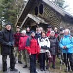Weiter ging es zur Saustallhütte. Am Wegesrand zeugte ein kümmerlicher Schneerest von der winterlichen Pracht, die dort noch vor kurzem herrschte. An der Skiliftanlage vorbei ging es nun über den Emma-Weg am Baumwipfelpfad vorbei zum Sommerberg. Der Emma-Weg wurde nach der niederländischen Königin Emma, die vor dem Ersten Weltkrieg regelmäßig in Wildbad zur Sommerfrische war und auch für den Wegebau auf dem Sommerberg nach der Bergbahneröffnung 1908 einen finanziellen Beitrag leistete, benannt. Der Baumwipfelpfad wurde 2014 eröffnet. Mit einer Gesamtlänge von 1.250 Meter inklusive der Rampe im Turm führt der Pfad durch die Baumkronen der Buchen, Tannen und Fichten des Waldes am Sommerberg in Bad Wildbad. Zusätzlich zu den interessanten Einblicken in die Baumkronen bieten einige Informations- und Erlebnisstationen Wissenswertes zur heimischen Natur- und Tierwelt und auch Geschicklichkeitsübungen werden aufgezeigt. Die Gruppe fasste, wie es einem Wanderverein zusteht den Beschluss, nicht mir der Standseilbahn nach Bad Wildbad hinabzufahren sondern über den Zick-Zack-Weg hinab zu wandern. In Bad Wildbad angekommen wurde noch eine Einkehr gehalten. Bei ausgezeichneter Bewirtung und netter Unterhaltung klang der Wandertag aus, bevor es mit der S-Bahn wieder nach Hause ging.